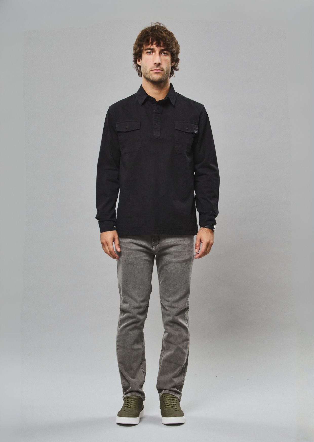 Nuestra camisa Bahía es un modelo holgado y recto, de cuello italiano. Realizada en lino y algodón; su textura es suave y fresca al tacto. Cuenta con dos bolsillos en el pecho y detalle de pinza en la espalda. Disponible en azul, verde claro, blanco y arena; con textura jaspeada.