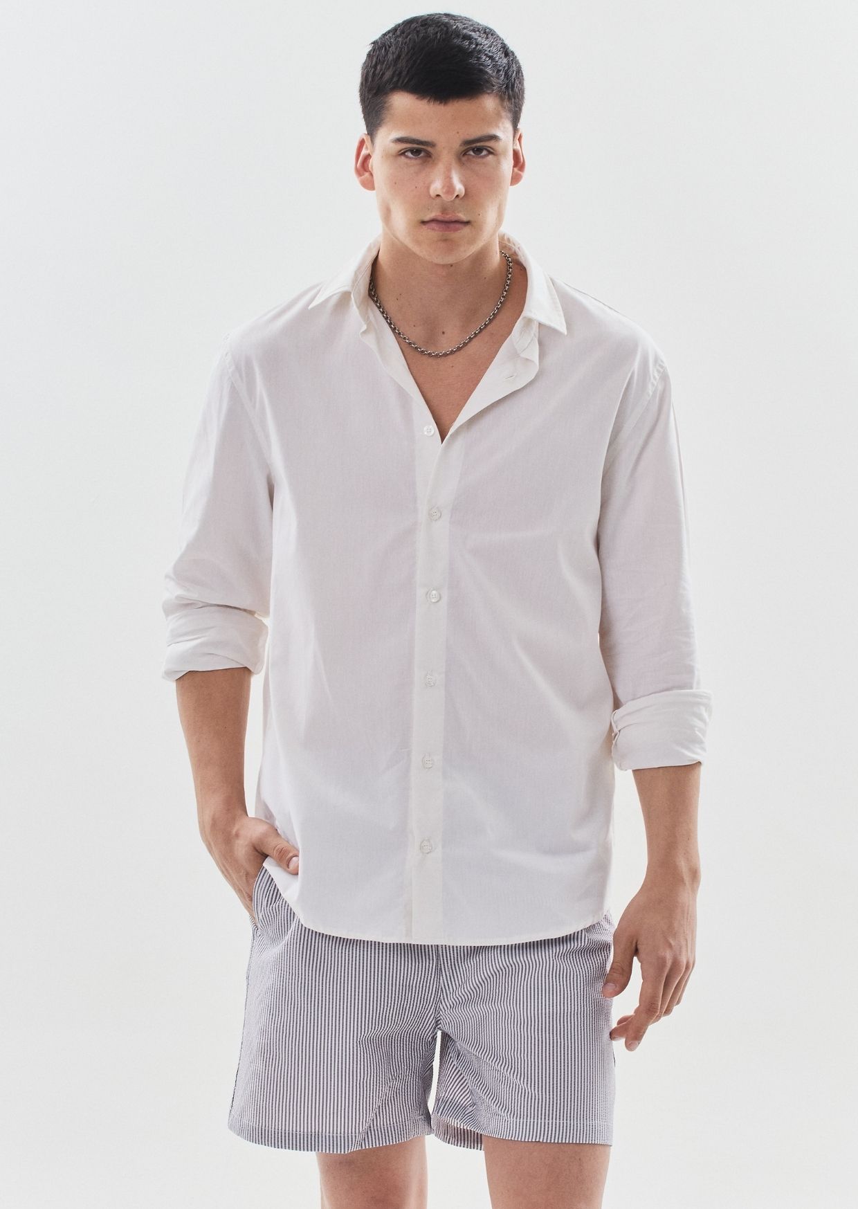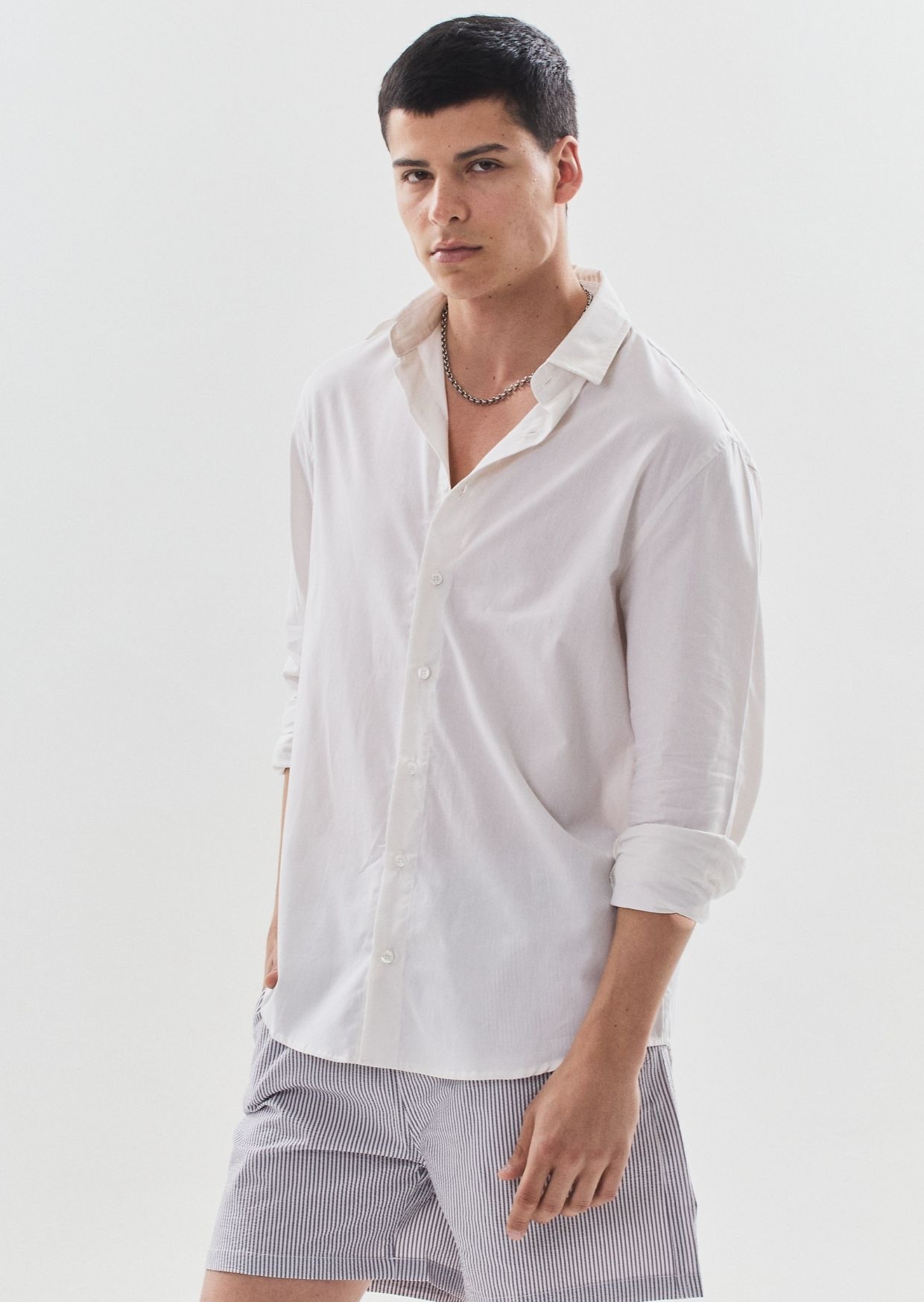 Nuestra camisa Caracas es un modelo holgado y recto, de cuello italiano. Realizada en lino; su textura es suave y fresca al tacto. Ideal para vestir más formal, manteniendo la frescura y comodidad. Está disponible en celeste, lila, blanco, gris, bordó y arena. El tono de la prenda puede variar levemente, segun la luz al momento de tomar la foto. Referencias: Altura: 1,75 – Peso: 70Kg – Talle: M