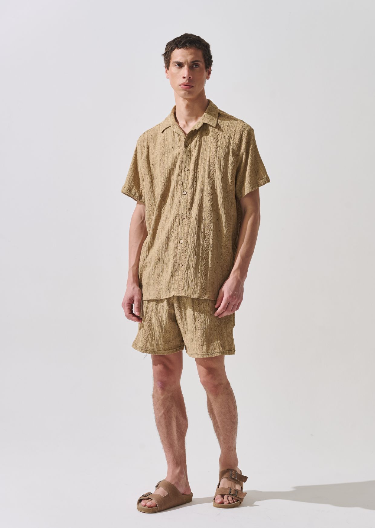Nuestra camisa Hibisco es un modelo suelto y fresco. Realizado en tela calada, con textura. Suave y cómoda al tacto; cuenta con botones de coco. Puede combinarse con su short a tono. Disponible en negro, beige y mostaza.