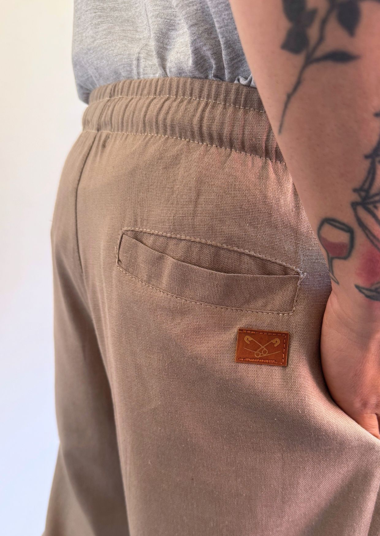 Nuestro pantalón Cartagena, es una prenda realizada 100% en lino; una tela fresca y liviana ideal para el verano. Cómodo, con cintura elástica y cordones a tono. Sin cremallera ni botones. Disponible en visón, choco, negro, beige y azul.